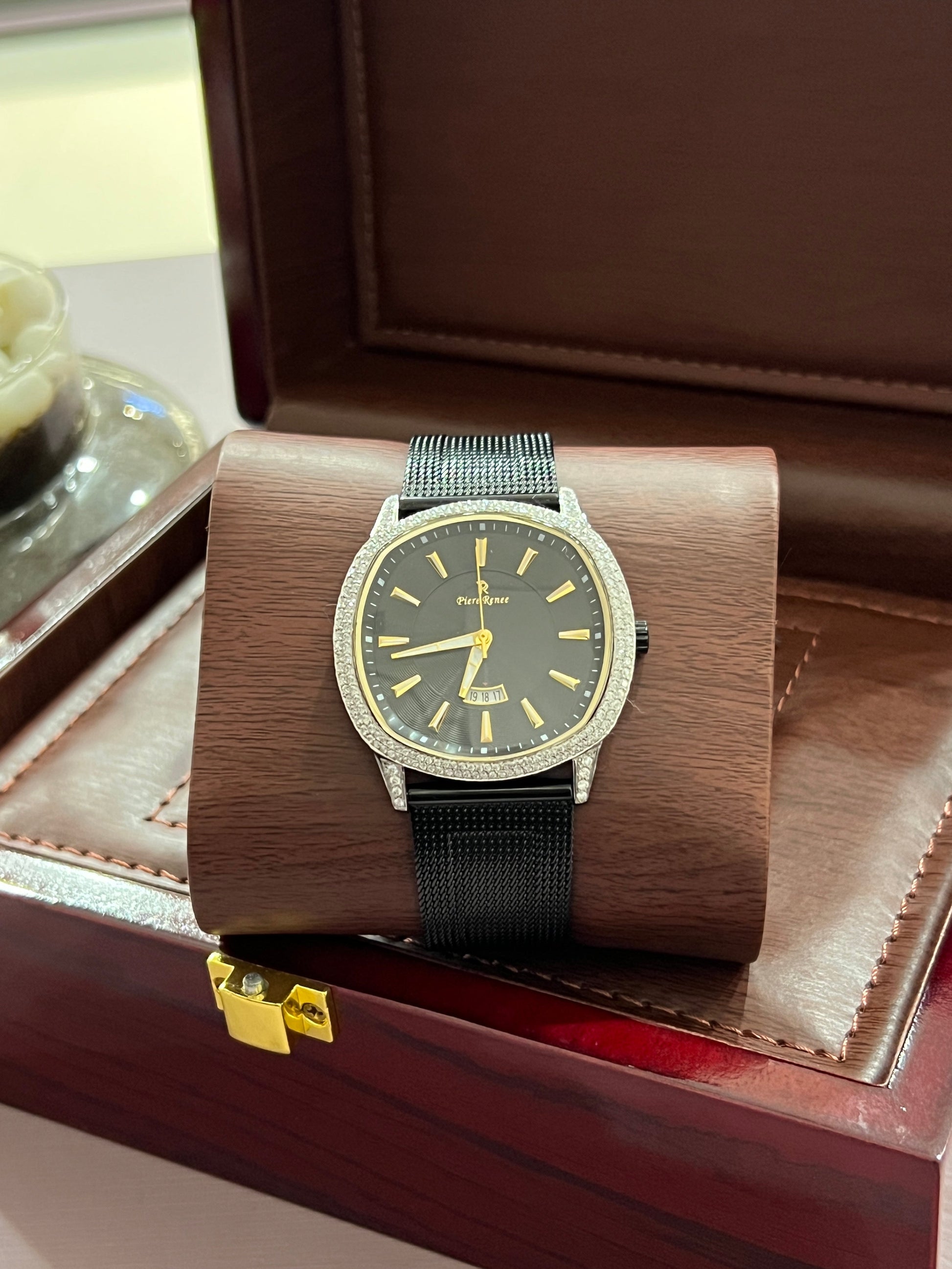 Piere Renee Gold - Black sleek watch with Moissanite Diamonds